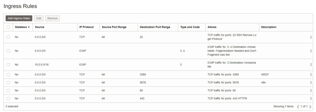 Explanation: This step ensures that external traffic can reach your n8n instance, as Oracle Cloud maintains its own security layers separate from the server’s firewall.